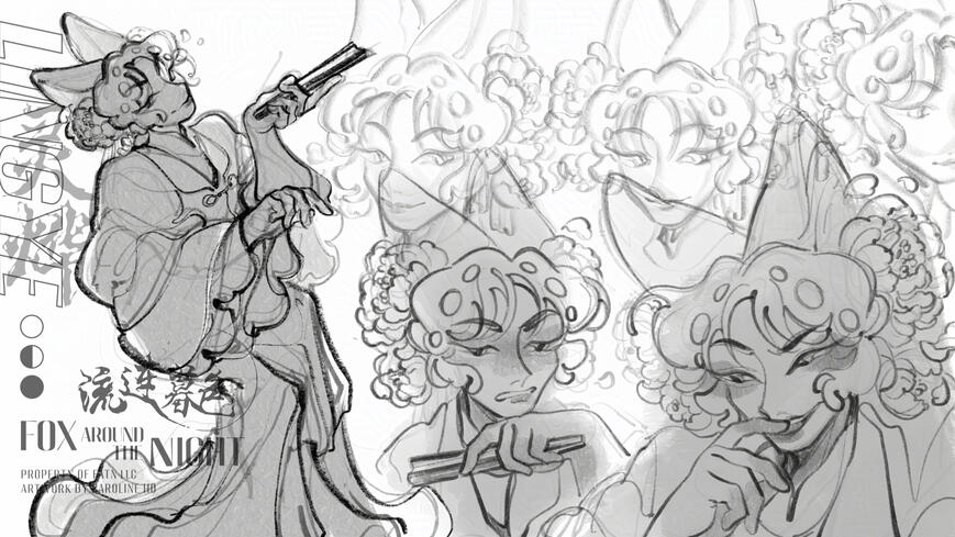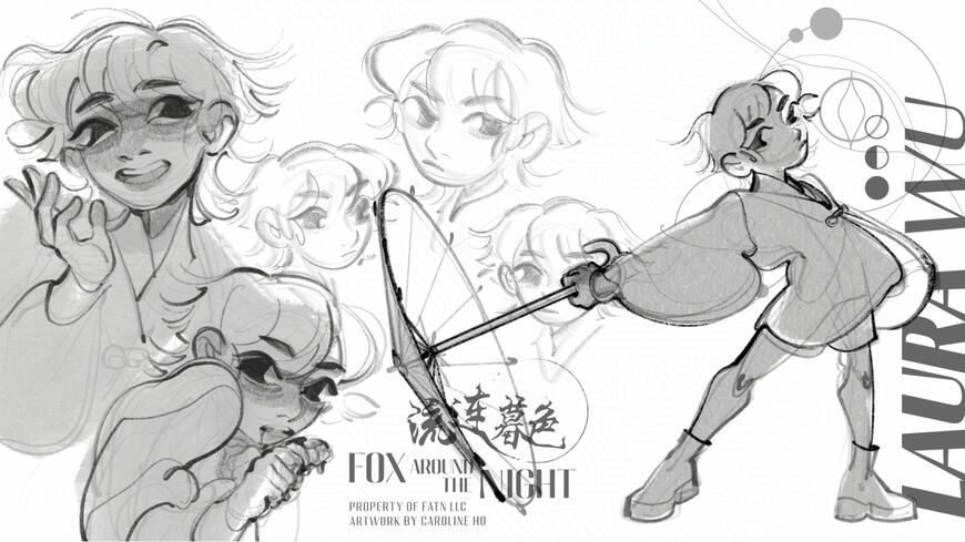 Fox Around the Night is an original animated series about a teenage rookie spirit hunter, Eileen, haunted by an overdramatic fox spirit, Lingye, who insists on mentoring her to become a master spirit hunter. The existence of the supernatural is no secret: you see what you believe in. The government funds a vast network of spirit-hunting organizations, a branch for every exorcism technique, to ensure humans and spirits live in harmony. This series will follow a fictional form of Chinese exorcism heavily influenced by Chinese xianxia concepts of cultivating spiritual energy, but set in the modern day American perspective of individualism.Eileen attends a prestigious urban prep school by day and takes on supernatural assignments by night. In the pilot, Eileen, along with her teammates Kyle and Megan, are tasked with hunting a toxic spirit silkworm leaking poison inside a small apartment building. As Eileen focuses on doing her part as a spirit hunter, cracks begin to show in other parts of her life: her slipping grades and her drifting childhood friend, Laura.
